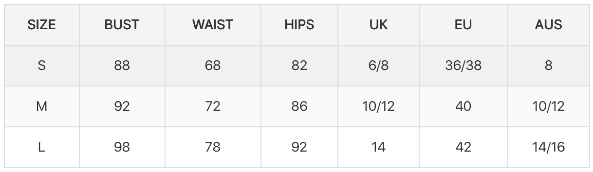 Sizing Chart (CM)